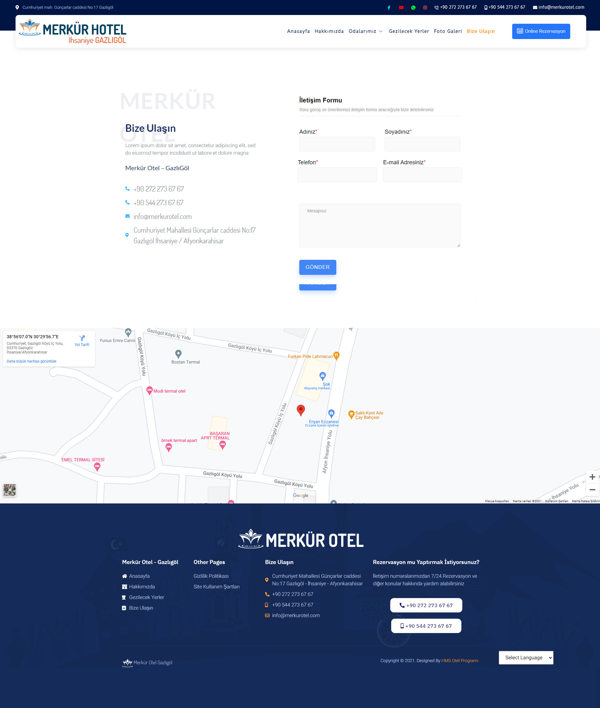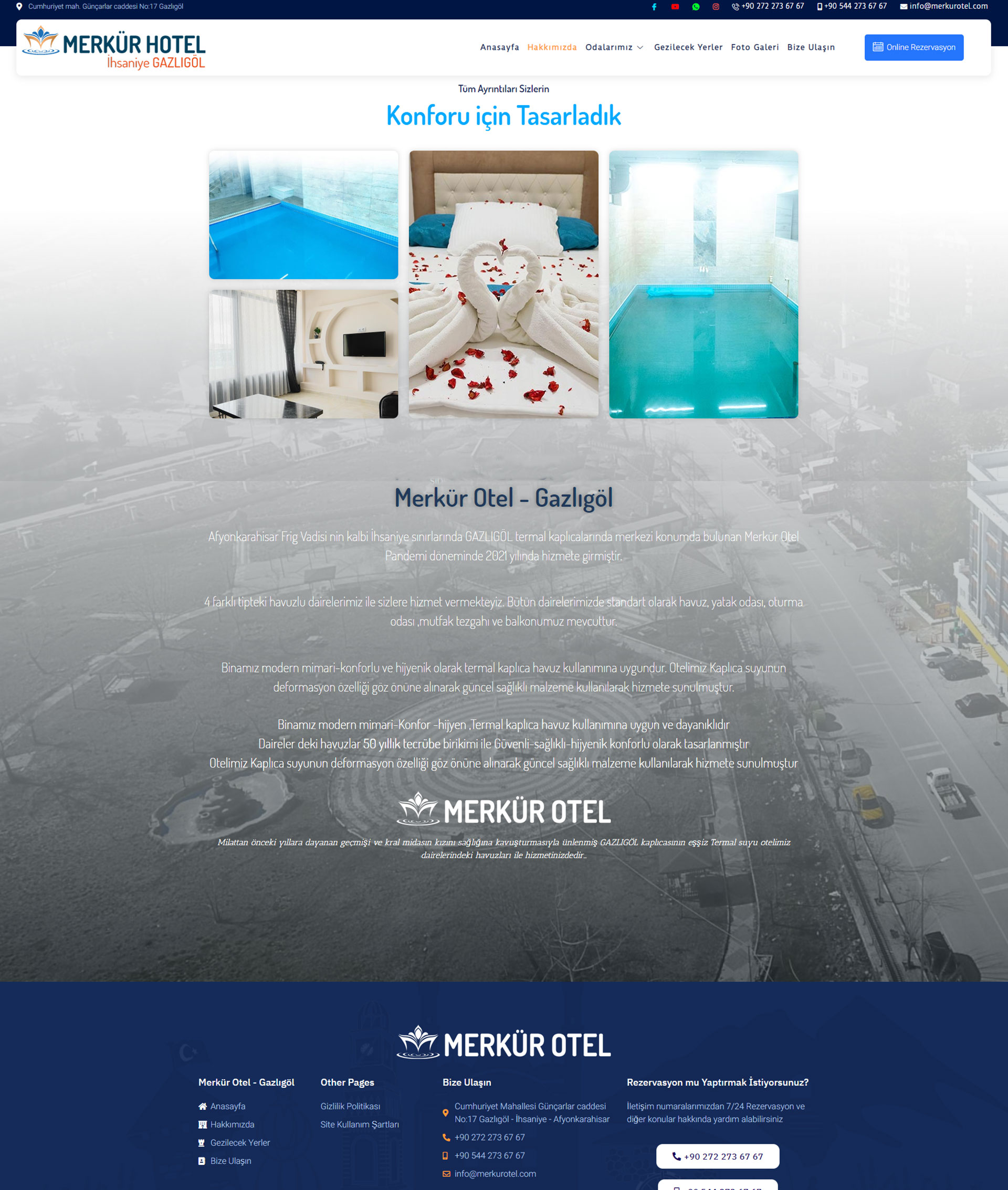 Afyon Karahisar / İhsaniye Gazlıgöl bölgesinde hizmet vermekte olan Merkür Termal Otel için Özel Tema Tasarımı / CMS / Online Rezervasyon Formu Entegrasyonu ve Sanal Pos kurulum hizmetleri sunulmuştur.
