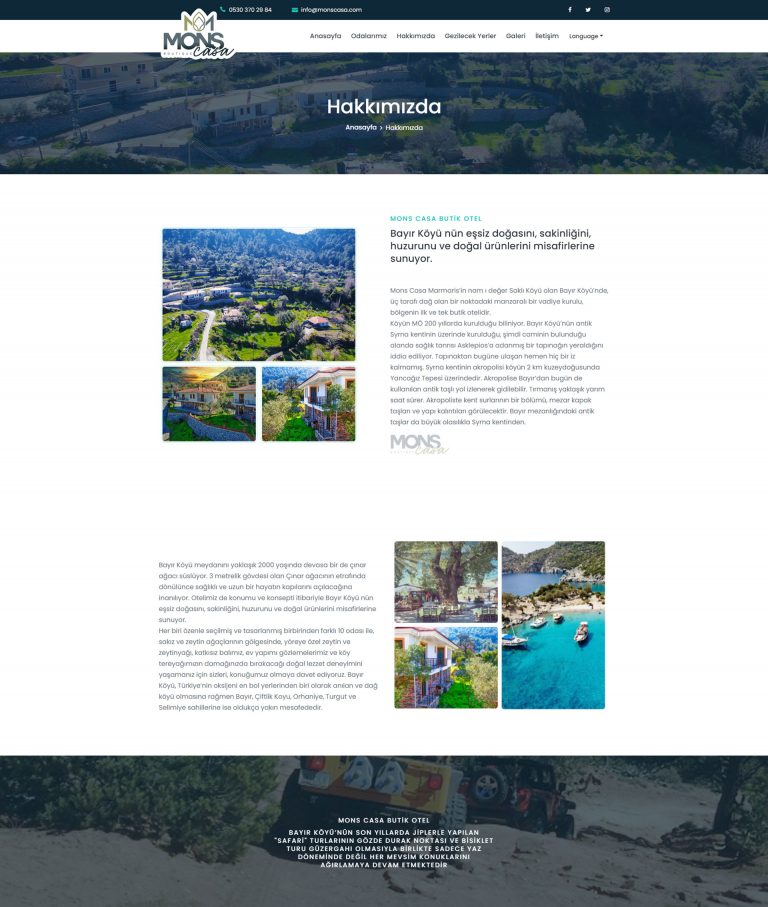 Marmaris Bayır bölgesinde hizmet veren Mons Casa Butik otel için Web Sitesi Tasarımı, Otel Programı entegrasyonu ve online rezervasyon sistemi kurulumu tamamlanmıştır.