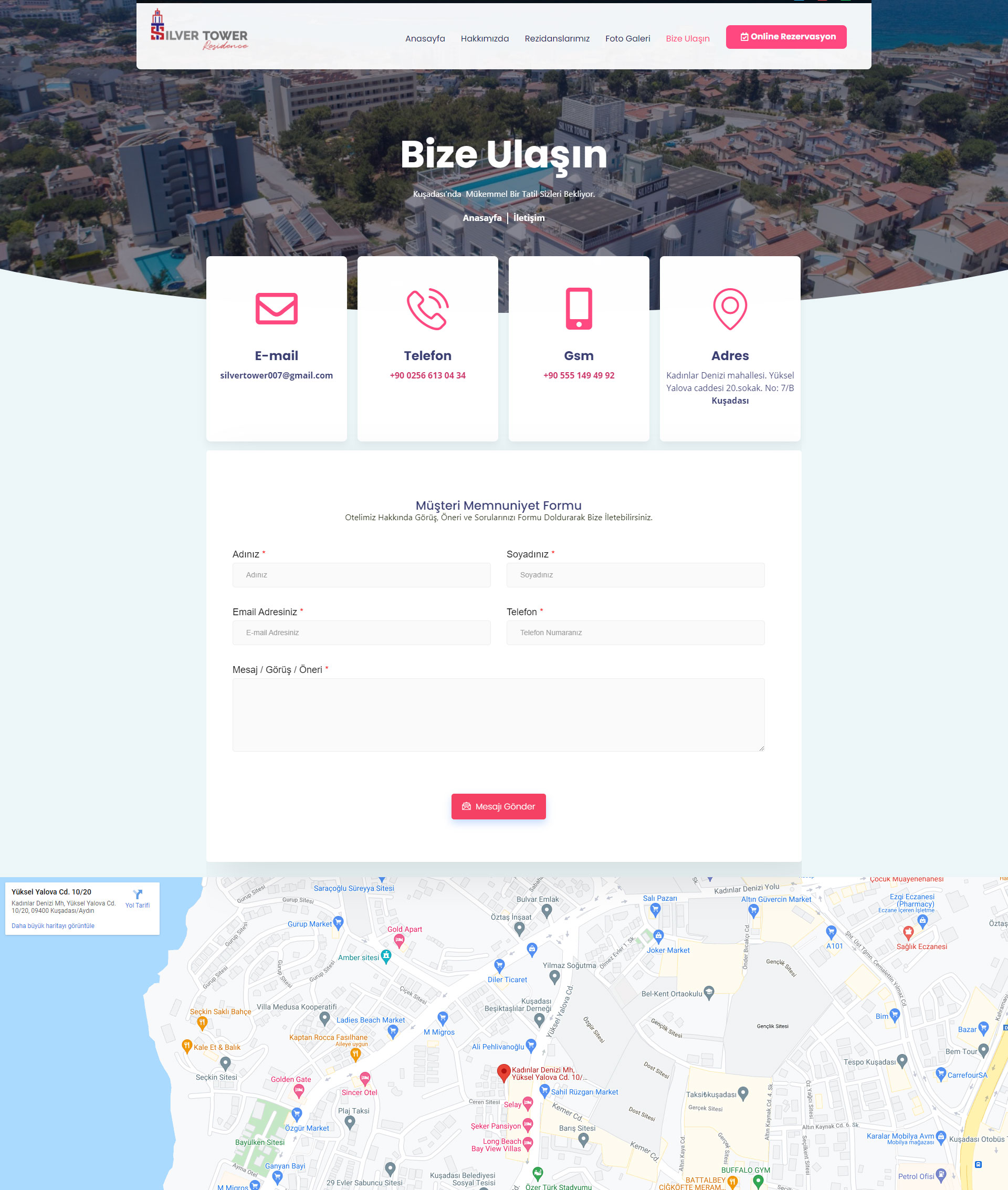Kuşadası Kadınlar Denizi bölgesinde hizmet vermekte olan Silver Tower Residence için Özel Tema Tasarımı / CMS / Online Rezervasyon Formu Entegrasyonu ve Sanal Pos kurulum hizmetleri sunulmuştur.