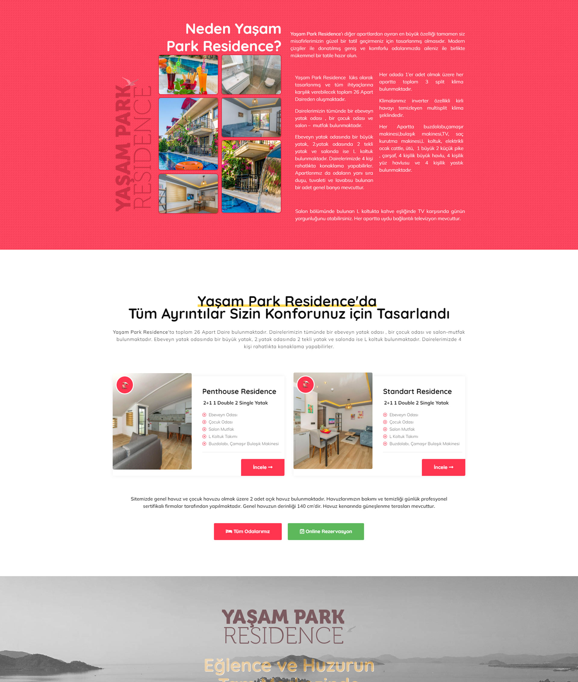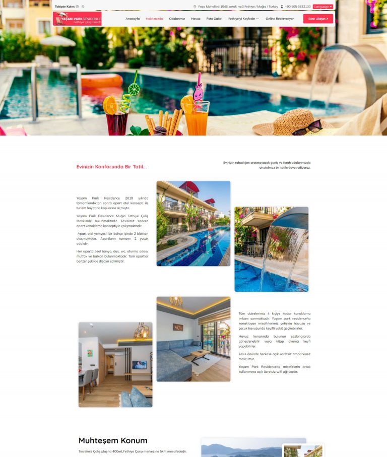 Fethiye Çalış plajı mevkiinde hizmet veren Yaşam Park Residence için Tema Tasarım ve Online Rezervasyon hizmetleri sunulmuştur.